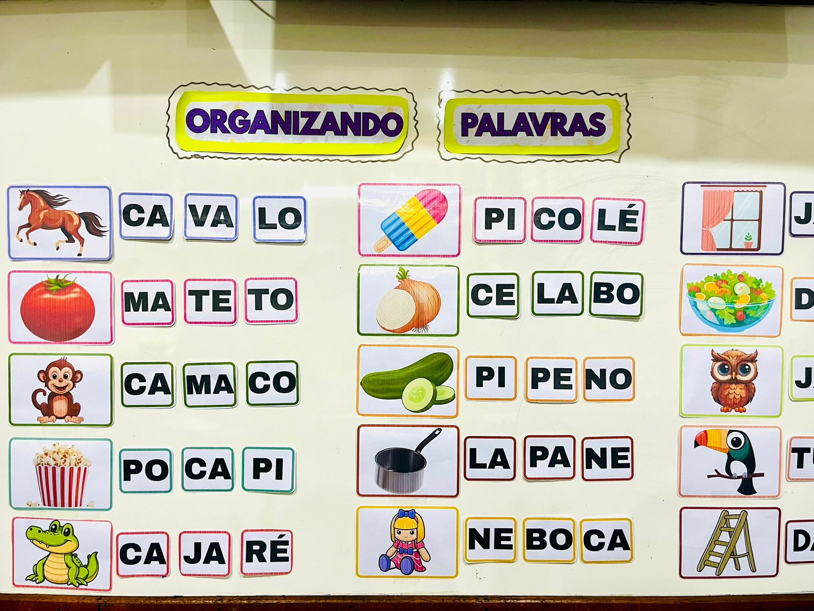 30 gravuras de palavras simples e complexas para estimular a consciência fonológica, a leitura, a memória e o raciocínio lógico, habilidades essenciais no processo de alfabetização.